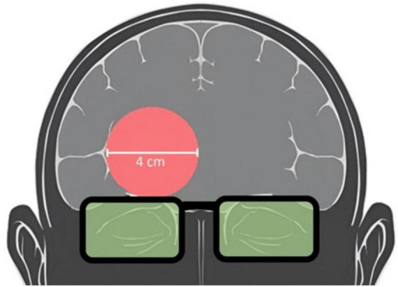 Next up, here you can see the area of the brain that was targeted, on the prefrontal cortex: