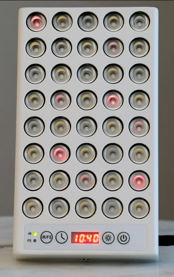 The device features 40 LEDs—20 for full-spectrum visible light and 20 for near-infrared light—making it versatile and uniquely suited to promoting well-being.