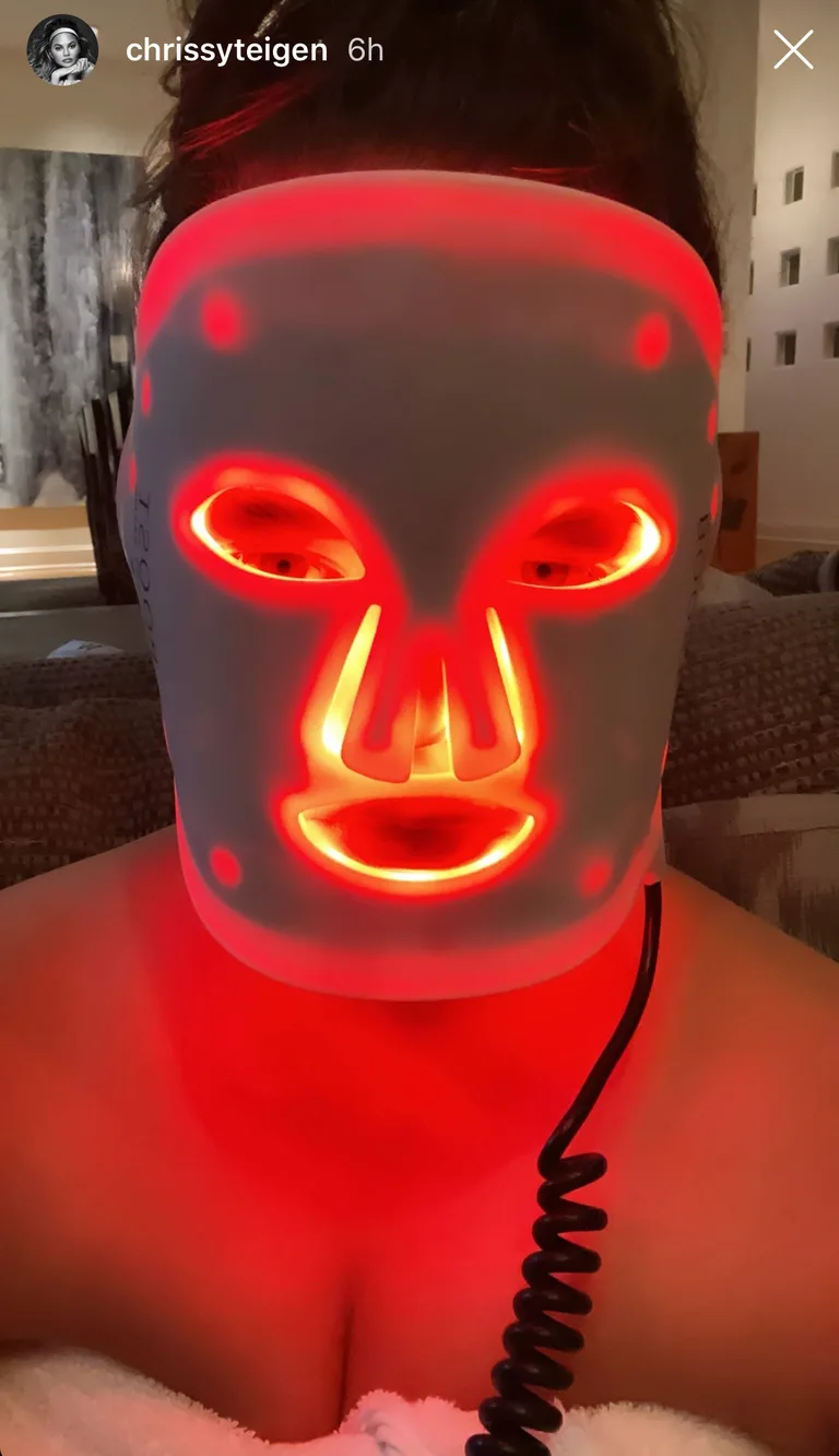 Here's Chrissy Teigen with a red light therapy mask.