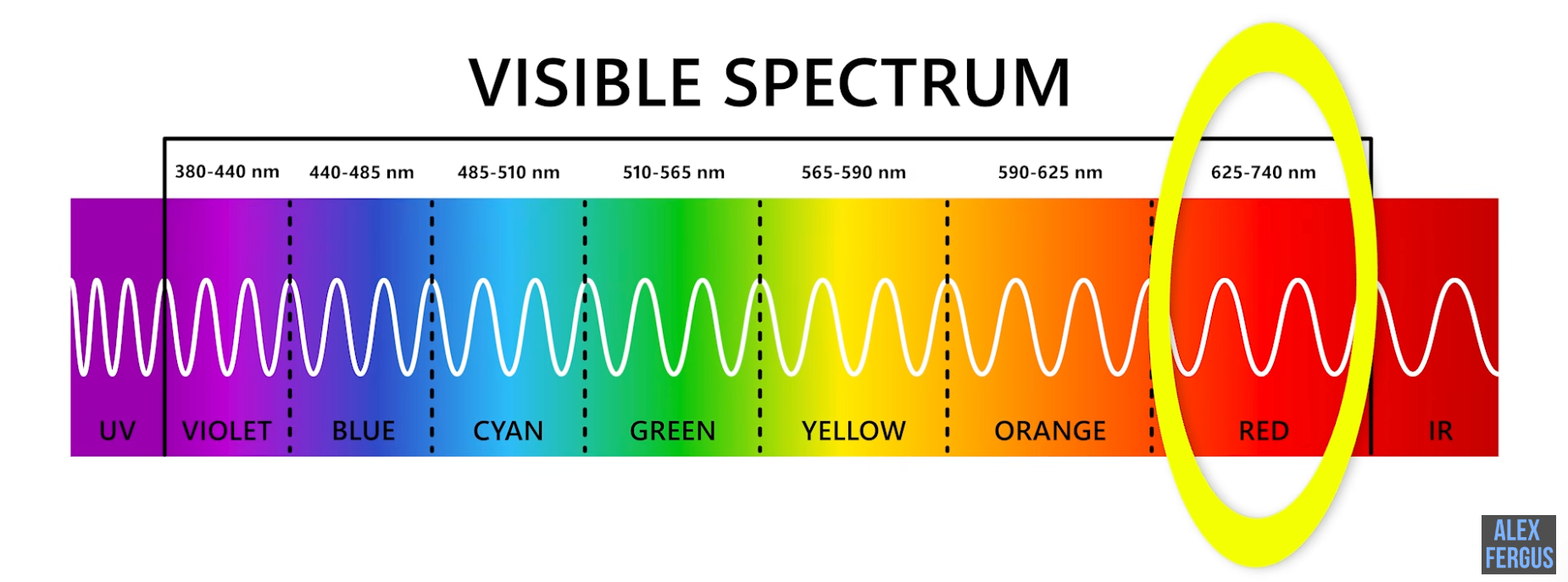 - Red light (around 633 nm)