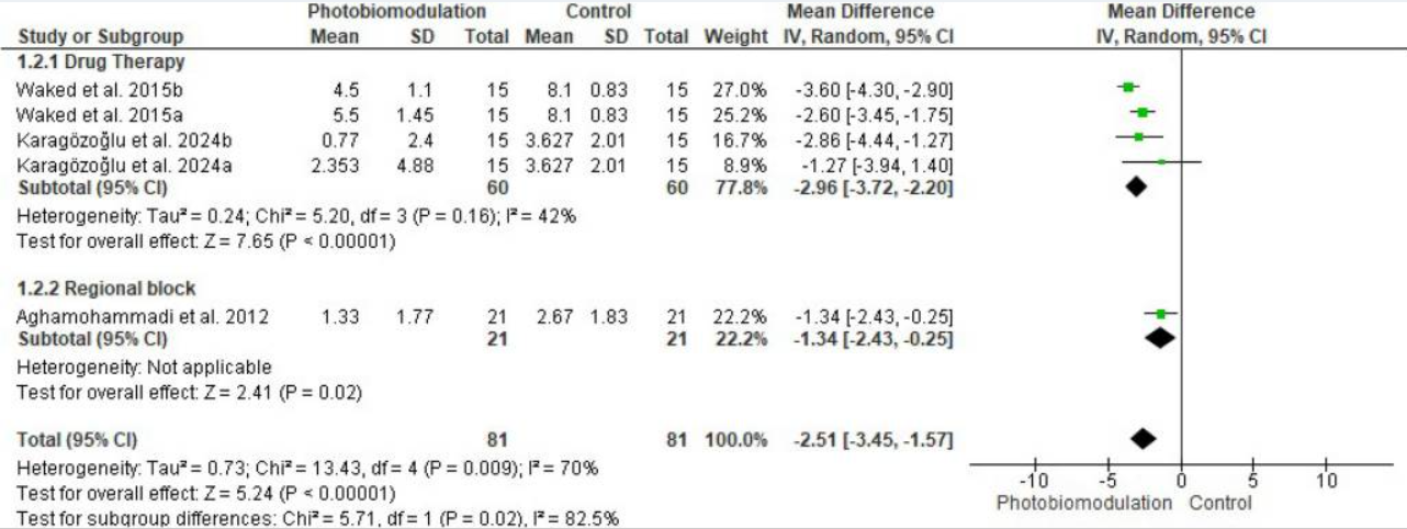 Then there's Figure 5, which has excluded studies with a high risk of bias, and the results for photobiomodulation are still better for pain control: