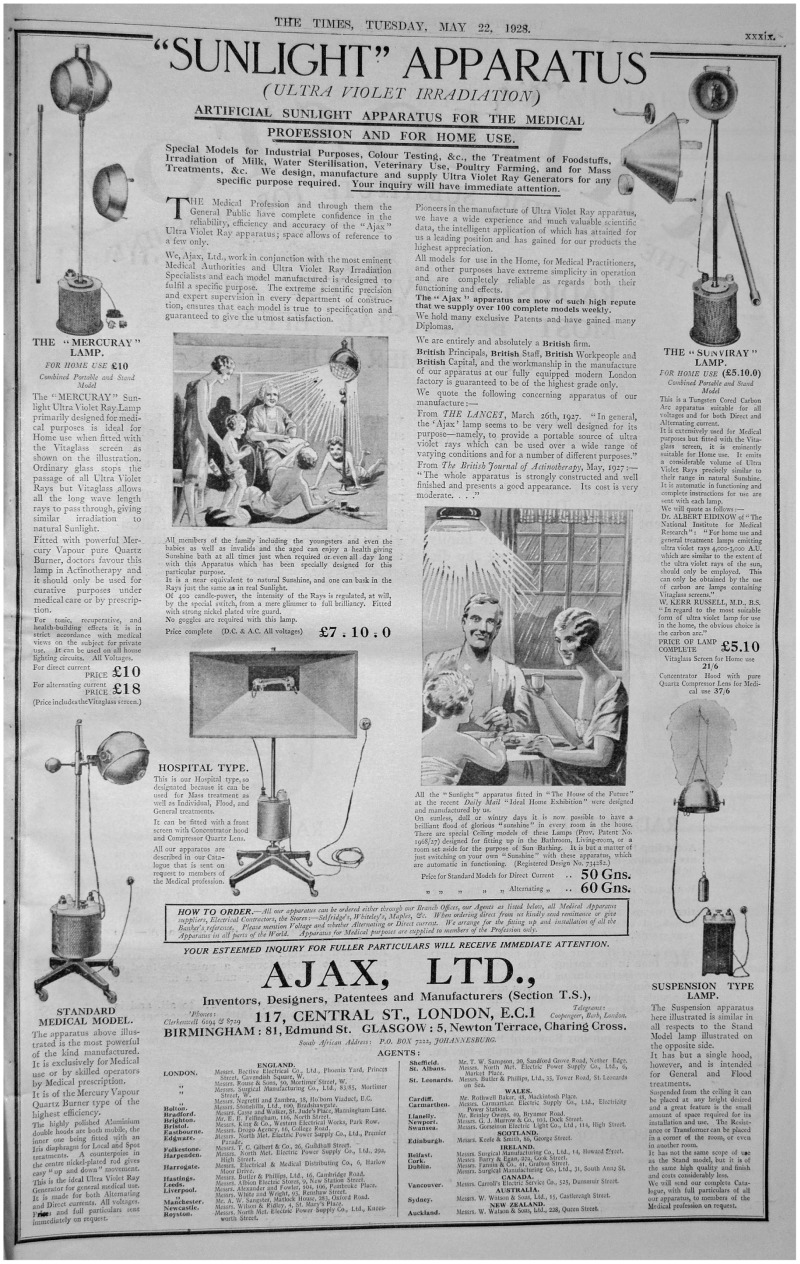 And, in that same newspapper, a display of a sunlight apparatus - a UV lamp - in the 1920s: