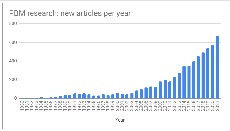 As of 2025, there are 8,000+ studies on light therapy in total. Even back in 2005, that number was still under 1,000 (26):