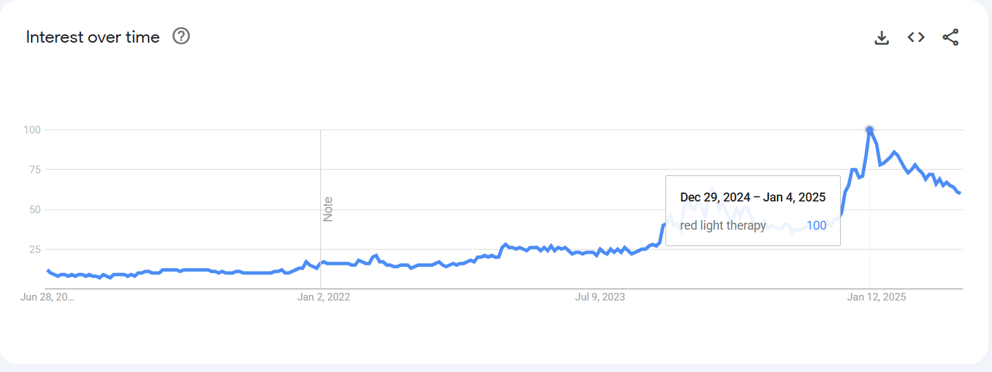 You can't see it but the number of searches for red light therapy has 8X'ed since 2021! So that's huge, huge growth!