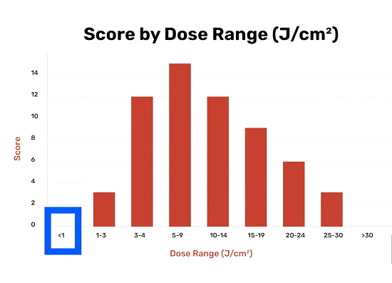 To put that into perspective: effective masks generally fall in the 5–9 joules/cm² range. This is less than 1. Translation? It’s delivering virtually no therapeutic benefit.