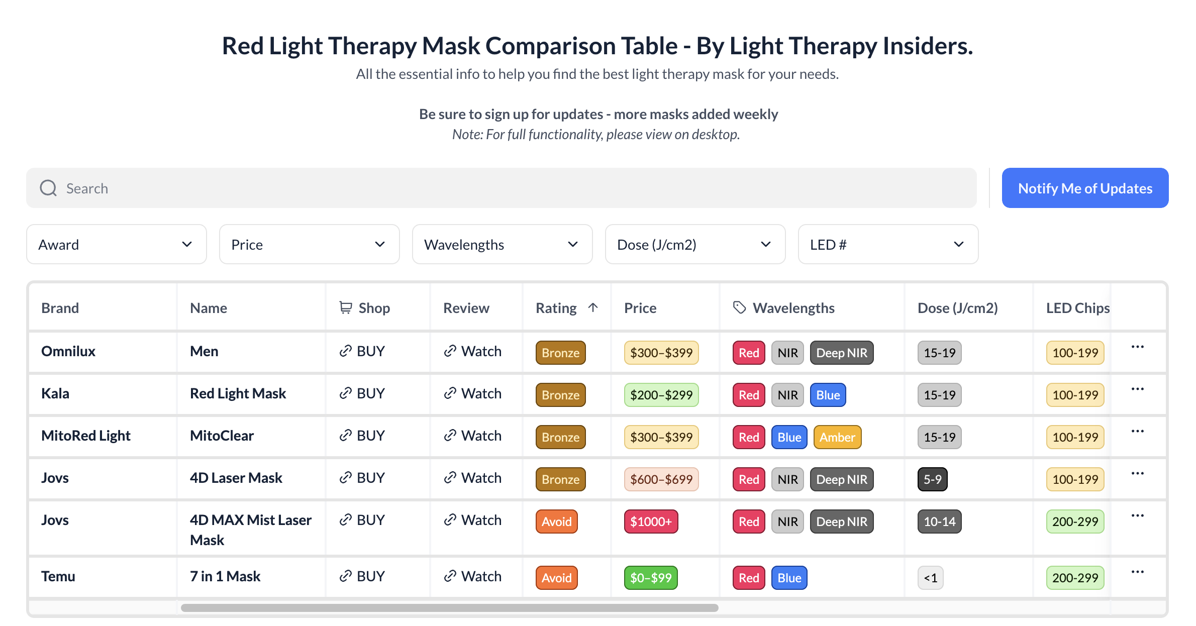 Want Help Choosing a Red Light Mask? I built my Red Light Mask Guide — an interactive tool that compares the top masks side by side.