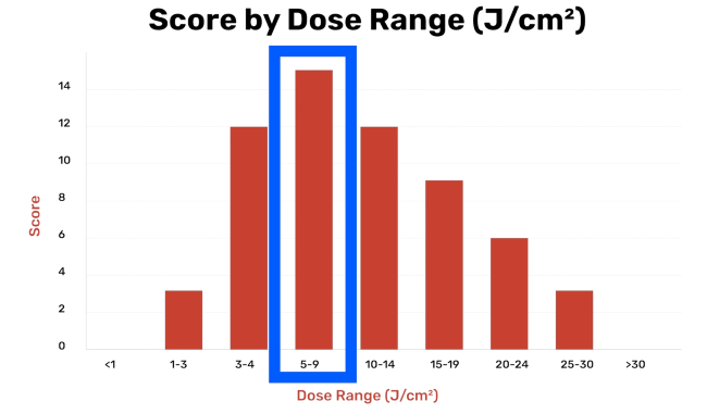 I tested fluence (joules/cm²) based on the LEDs alone. A standard 10-minute session gave 11.6 J/cm², which falls nicely into the effective range. If you shorten sessions slightly (to around 6–7 minutes), you’d hit the sweet spot for optimal results.