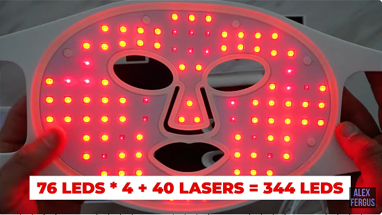 The mask uses 76 quad-chip LEDs—each LED contains four chips, one for each wavelength. That’s 304 chips in total. Add 40 laser diodes, and you’ve got 344 total light sources. On numbers alone, this looks impressive.