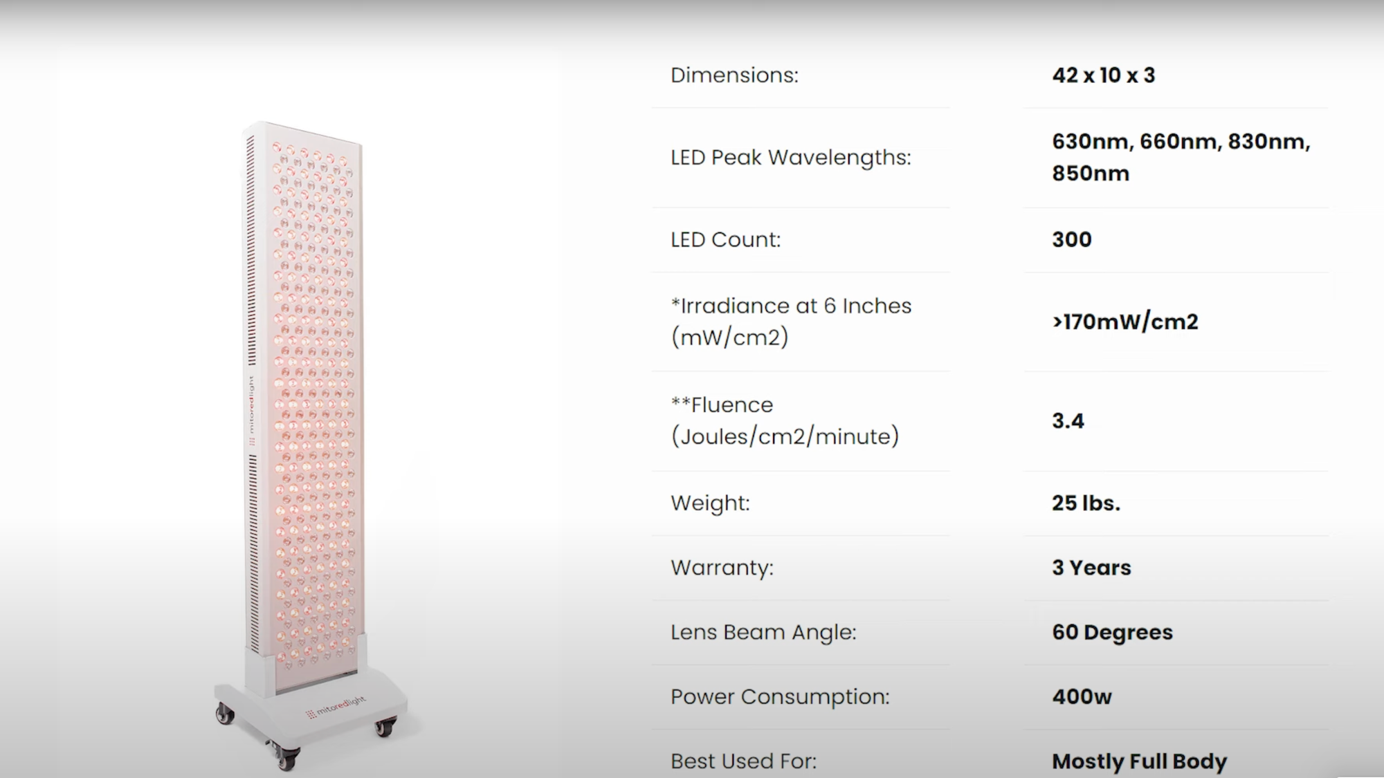 As someone who's witnessed the evolution of red light therapy firsthand, my recommendation for MitoPro 1500+ comes with a mix of enthusiasm and discernment. While it undoubtedly shines in terms of power output and versatility, its narrower width may pose challenges for users seeking full-body coverage.