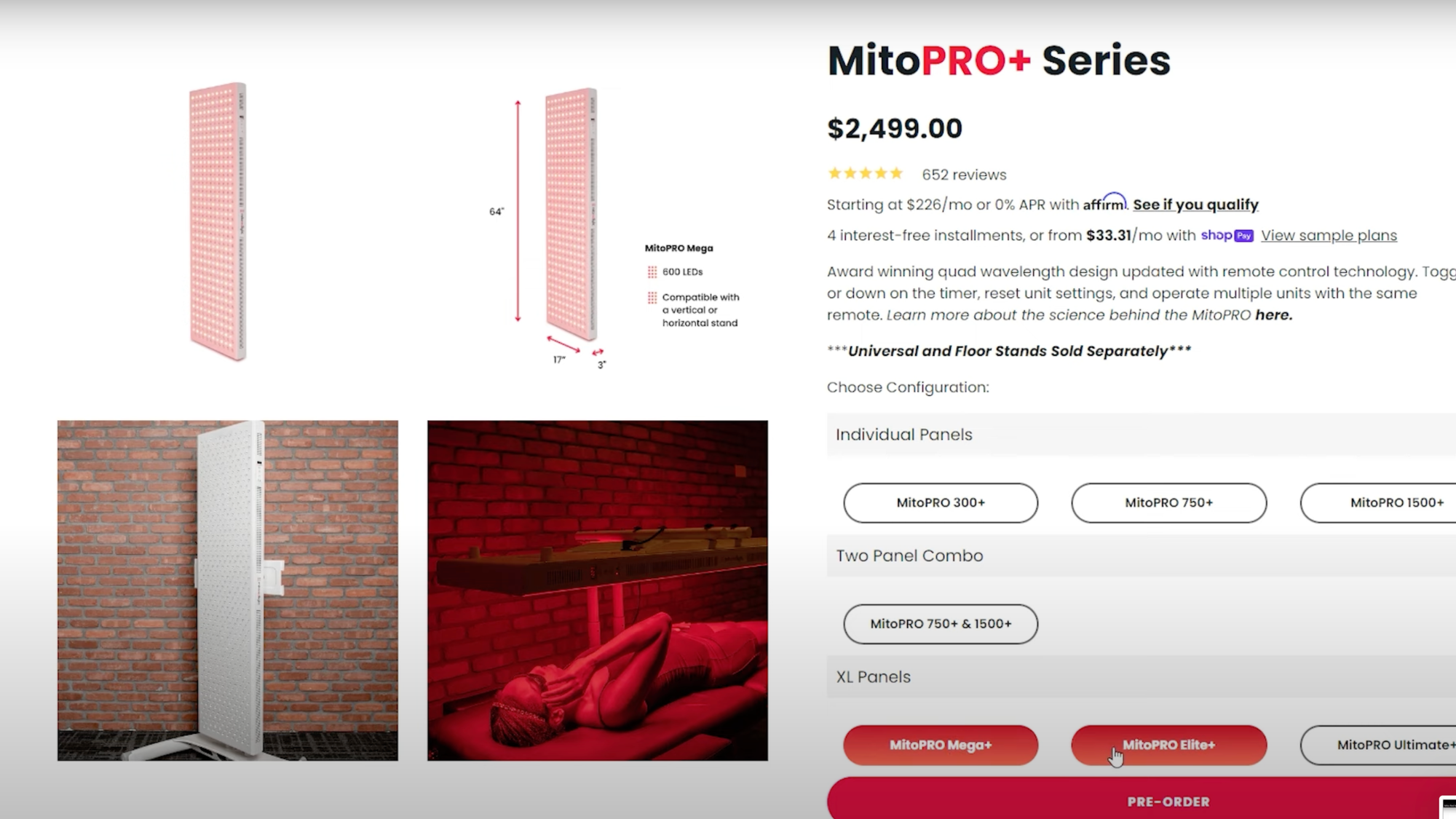 Let's talk dollars and cents. MitoPro 1500+ is now priced at $1,169, a mere $20 increase from its predecessor which came out 2 years ago which ranked the number one wall panel for 2021! So this 1.71% price increase is still in keeping with Mito Red Light's commitment to affordability.