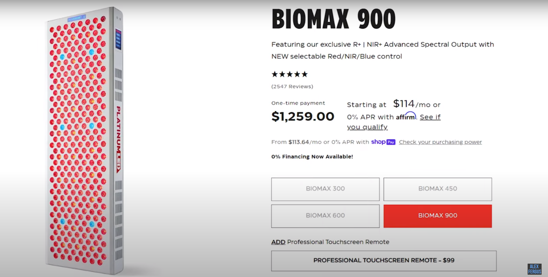 Now if you go on their website, you'll see their wide range of products, not just panels, but they also sell a wide assortment of other types of red light therapy devices
