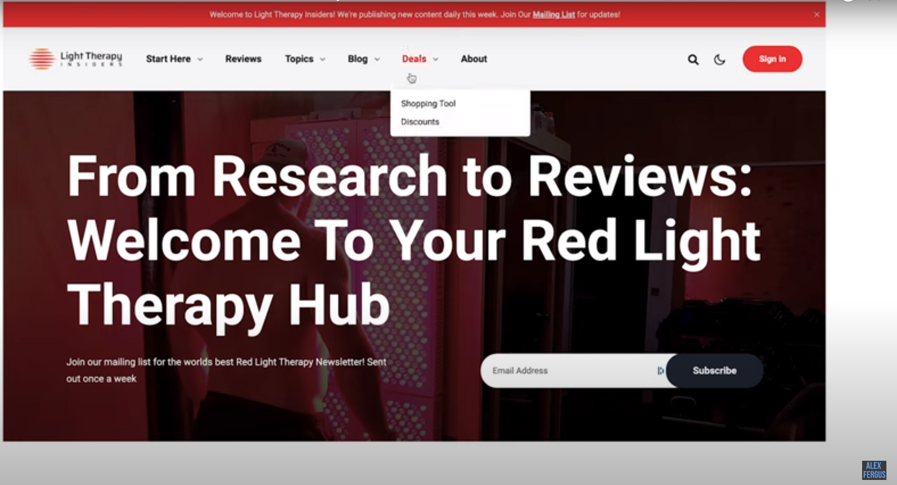I'll invite you to head over to my Light Therapy Insiders website. Click on the Deals tab. Select Shopping Tool in that pop-up menu.