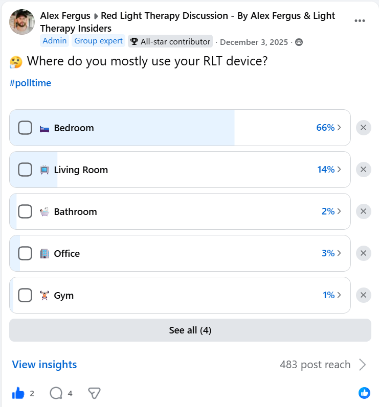 Poll Time: Where Do You Use Your Red Light Therapy Device?