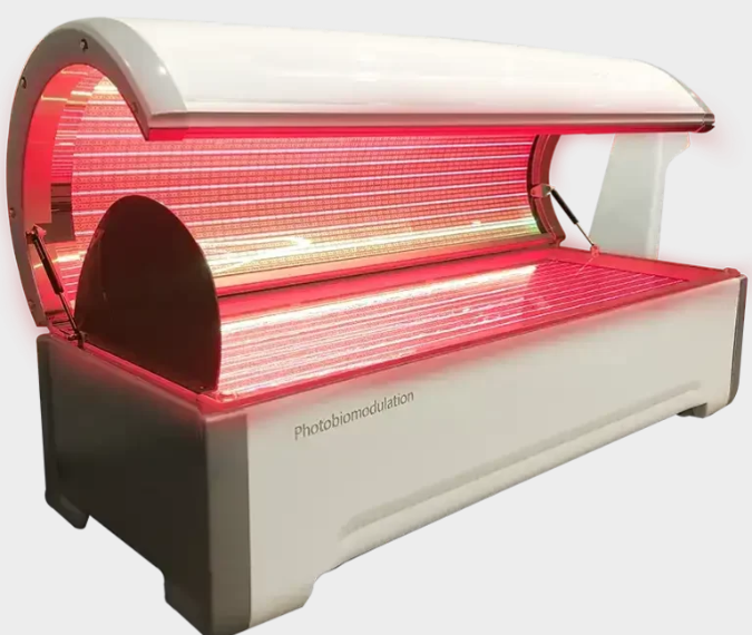 - Next up, there's the Hue Light Whole Body Photobiomodulation chamber. The Hue Light Chamber isn't just another red light therapy bed but incorporates the Nogier Frequencies for pulsing. I'm skeptical about these frequencies until I see good data that they work, but I'm open-minded that they can work. Hue Light does have a very good table on the topic - if you click "Nogier Frequencies User Guide" on THIS page. The Hue Light is pricier, coming in at around $110,000 USD. And, the bed also emits green light, going as low as 540 nm. You can see the Hue Light Whole-Body Photobiomodulation Chamber here: