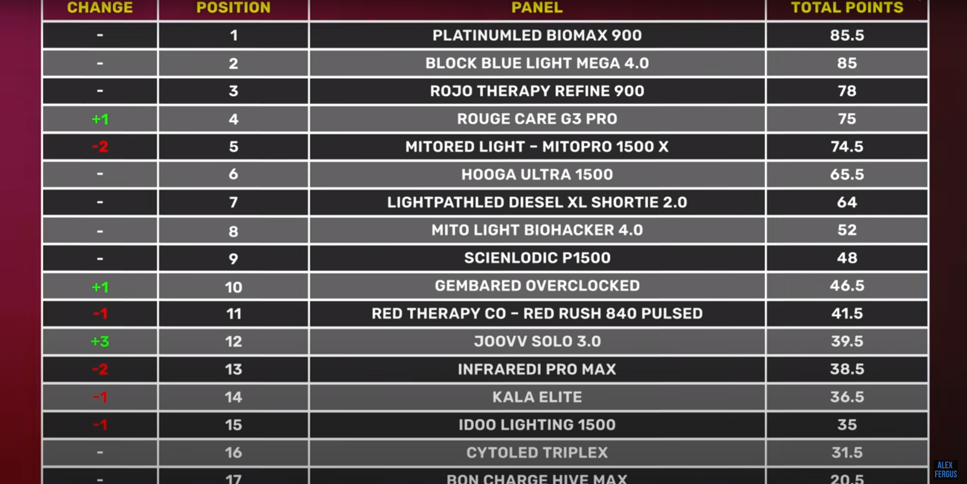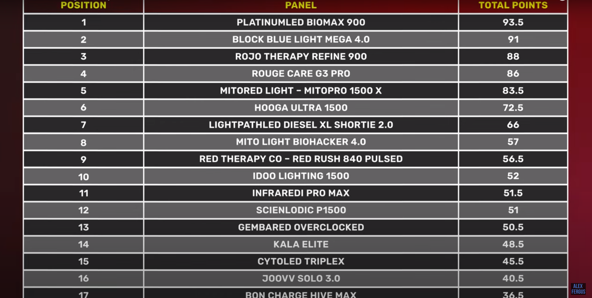 Welcome Rojo Light Therapy Refine 900 (code ALEX saves)! This has just been released from an Australian company shipping internationally. It's only their second generation panel because the company has only been running for a year. Looks promising, and it could do well in this competition. So, it's one to watch. I'm glad to have this panel in my competition for the first time ever this year!