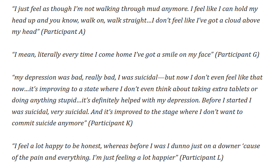 - Less depression and anxiety and improved quality of life.