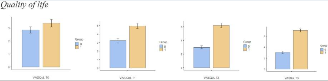 - And, quality of life in the treatment group becomes much, much higher - please note the Y-axis that moves up and is more challenging to read (28):