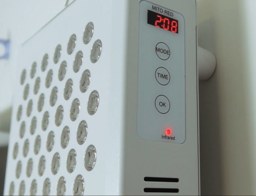 - Panels with digital controls — On some MitoRed models, you’ll see a “mode” button. “R” means red, “I” means infrared, and you can toggle between them or run both. If you only have “R” active, you’ll see glowing LEDs. If you only have “I” active, everything will look dark — but it’s still working.