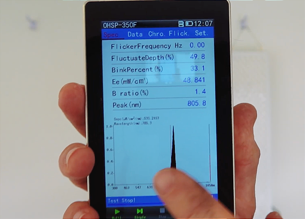 The second panel looks like nothing is happening — no glow, no sparkle — yet my spectrometer shows a clear peak at 850 nm. That’s solid evidence the panel is outputting strong therapeutic light… even though my eyes can’t see it.