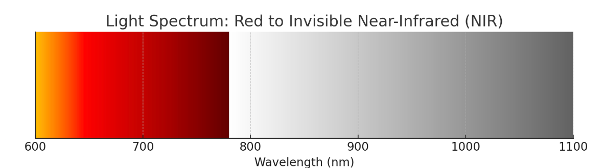 - Near Infrared (NIR) Light – Typically starting around 810nm, this light is invisible to our eyes. You cannot see it, but your body still receives the therapeutic benefits.