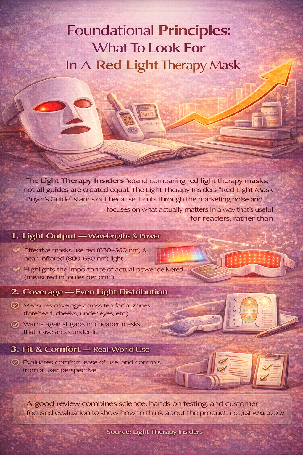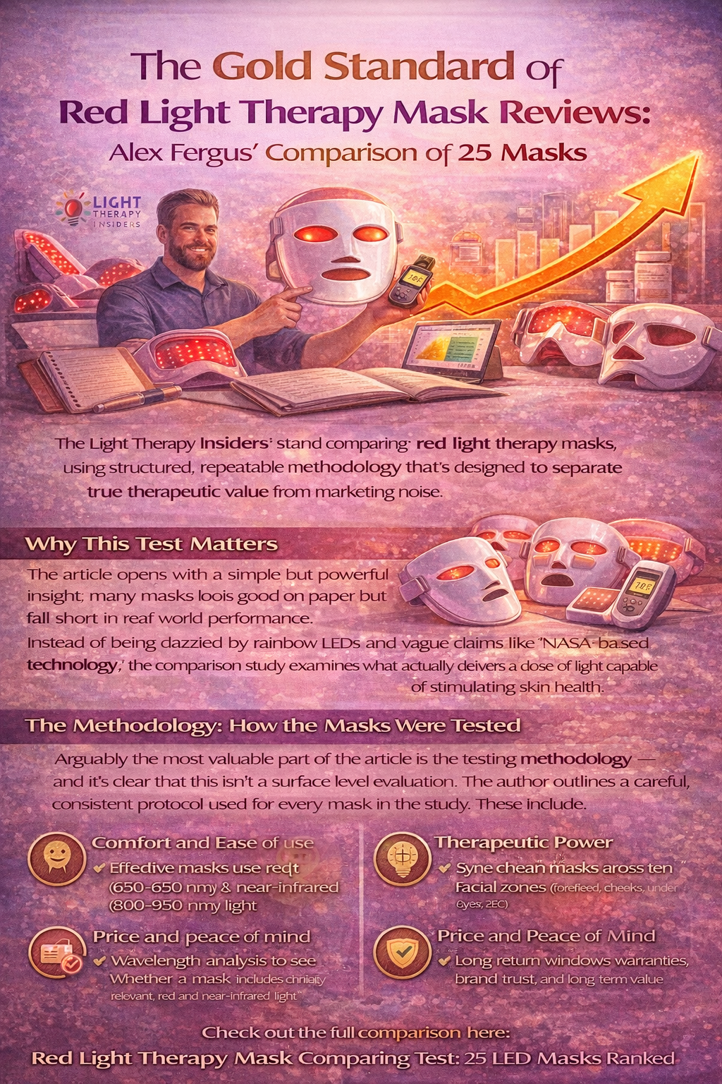 When it comes to reviewing and comparing red light therapy masks, not all guides are created equal. The Light Therapy Insiders “Red Light Mask Buyer’s Guide” stands out because it cuts through the marketing noise and focuses on what actually matters in a way that’s useful for readers, rather than regurgitating specs or hype plucked from press releases.