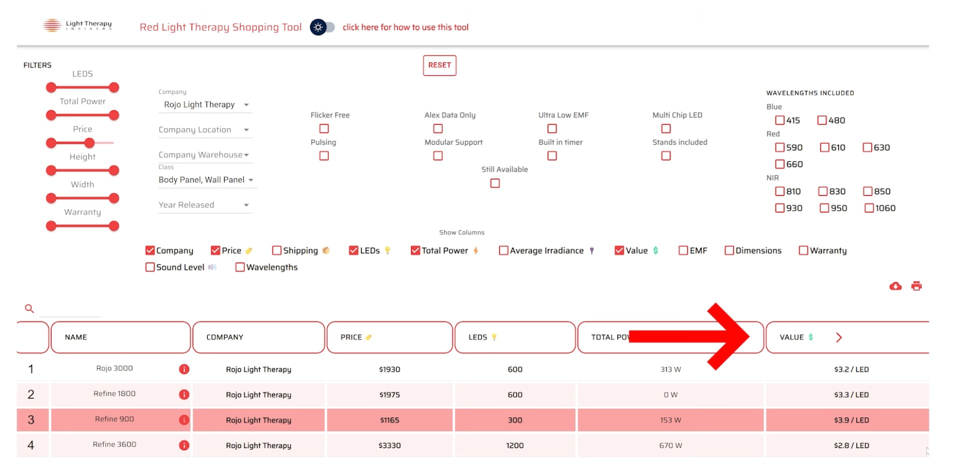 - The Rojo Therapy Refine 3600 costs $2.80 per LED.