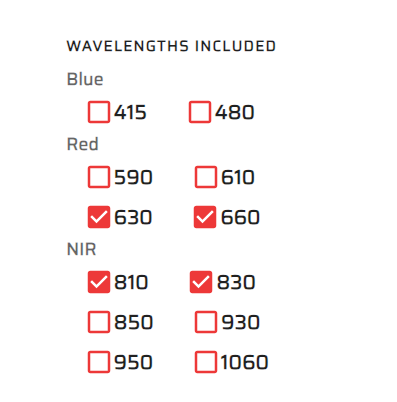 That way, if you want a panel that emits, say, 630 nm, 660 nm, 810 nm and 830 nm, you can see all products that are sold online with that specification.