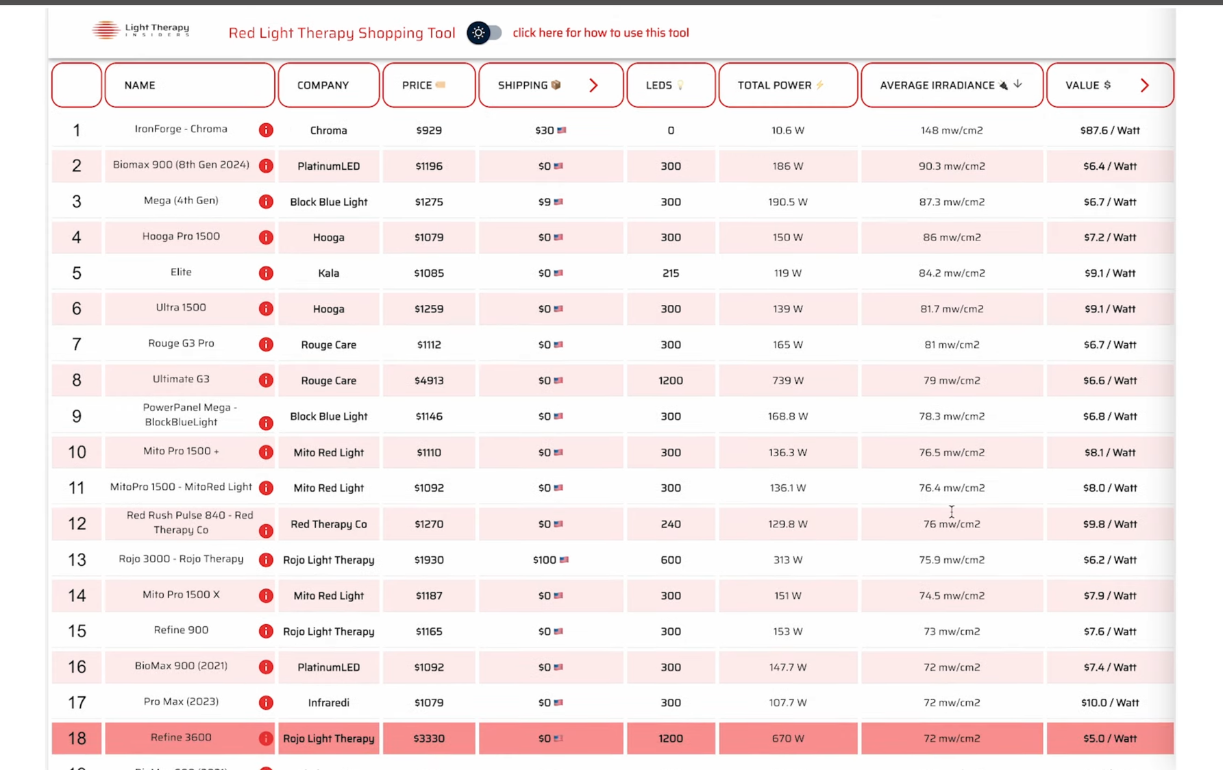 Let's do a quick comparison. Check out my other videos using the Light Therapy Insider’s shopping tool guide for more in-depth information.