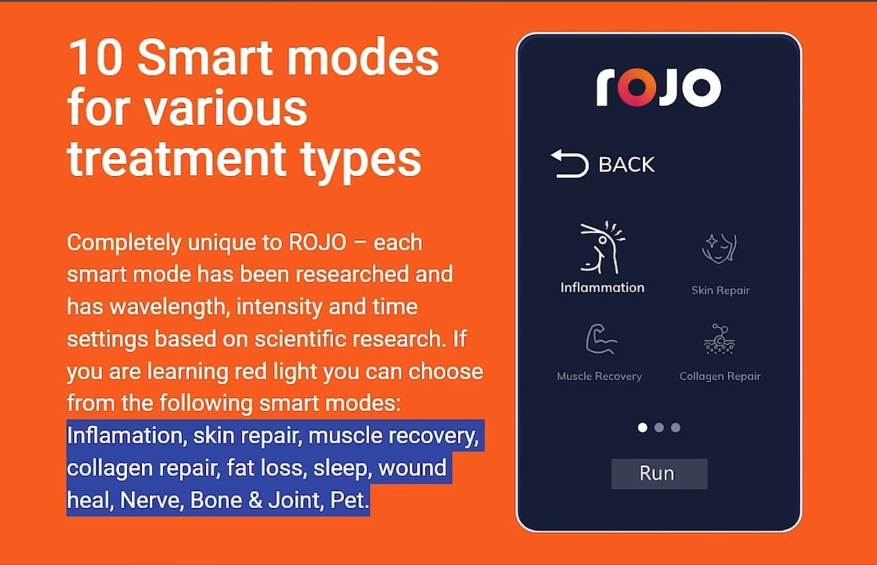 Rojo has been in the business for a few years, and they’re very passionate about red light therapy. However, some people have been in the field longer and still haven’t figured out the best dosing protocols, optimal wavelengths, or whether pulsing should be used. This makes me question the accuracy and usefulness of these smart modes.
