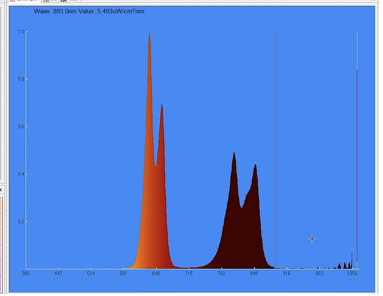 Let’s fire up the spectrometer! I tested all five claimed wavelengths and took multiple readings while moving around. This showed that we have a nice blend of light, leading to excellent coverage.