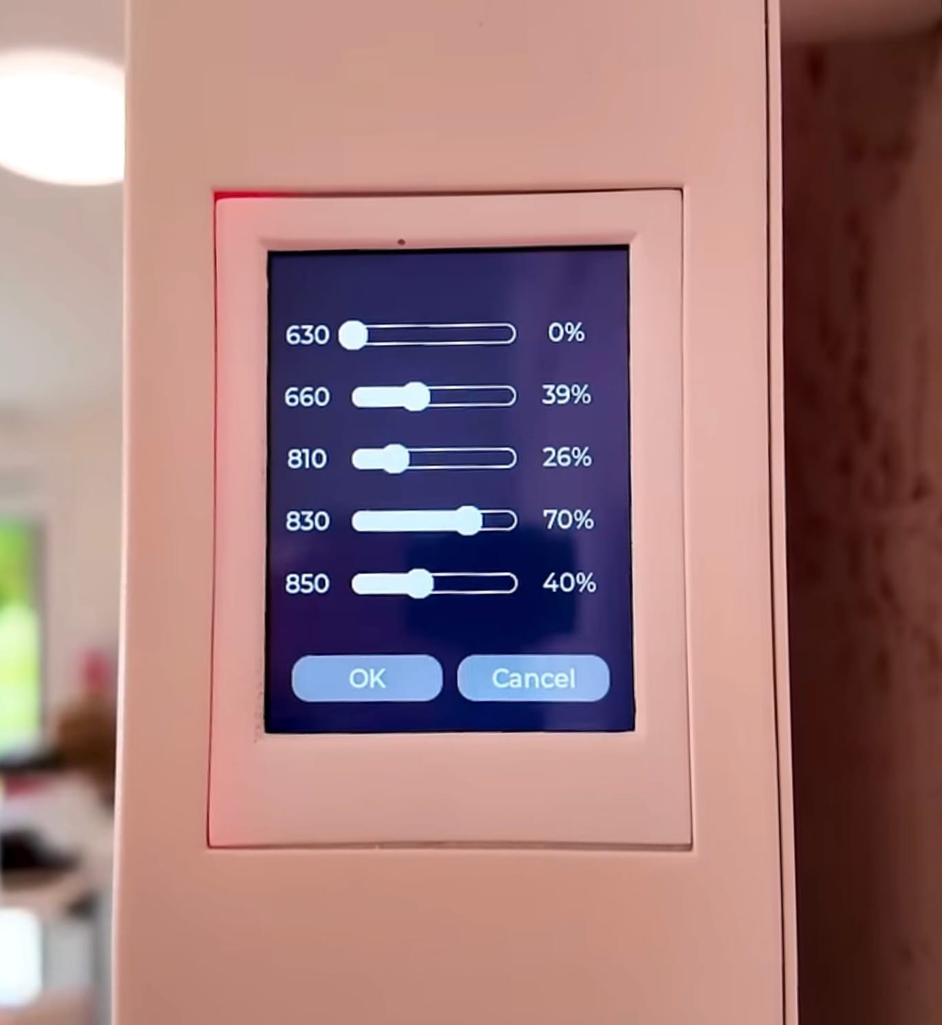 When you select a mode, it changes the emitted wavelengths, intensity, and time duration. You can access these settings directly through the panel or the app. Additionally, you can create custom preset modes and save them in the panel.
